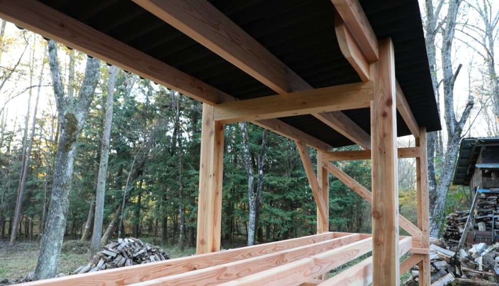 マツカラ 自然と調和した高耐久の薪小屋 マツカラの薪小屋 一流の匠により考え抜かれた構造 日本の伝統的な木組みの木造建築で環境に配慮した家づくりを行う大工が設計。国産材カラマツの特徴を存分に生かし、薪がよく乾く通気性と重い重量に耐える強度を両立した構造を実現しています。 → 詳しく見る 素材の特徴 を生かす 安心安全の国産のカラマツ材 カラマツは家やウッドデッキにも使われている木材です。繊維が密で固いため、摩耗や割れに強いという特徴があります。 また、樹脂分が多く、水をはじきやすく、腐りにくいため、屋外に設置する薪小屋に適した素材です。 塗装不要で環境にも優しく、メンテナンスの手間やコストを大幅に省くことができます。 → 詳しく見る 選び抜いた 屋根材 耐食、耐久、防水、防音 屋根材は70年以上の実績があり、100か国以上で販売されている信頼性の高い素材を使用しています。極寒から高温まで、あらゆるタイプの気候に耐えることができ、耐腐食性、防水性にも優れています。また、雨音を吸収するので静穏効果もあります。屋根材は好みに合わせ4色からお選びいただけます。(カスタマイズで国産のカラマツ材に変更することも可能です) → 詳しく見る 松恋と唐匠 2つのラインナップ ● 松恋(まつこ) ―中段あり― 不揃いな薪の積み重ねや、樹種や乾燥時期に合わせた区別に便利な中段ありタイプ。 ●唐匠(からぞう) ―中段なし― 空間を余すことなく最大限に活用できる中段なしタイプ。 ※ どちらも基本サイズは横幅約4m、高さ約2m、奥行き約1mです。 ※「片側に扉をつけて小屋のようにする」、「奥行を長くする」といった、ご要望に応じたカスタマイズも可能です。 → 詳しく見る 安心の価格設定 クリアで分かりやすい料金体系 松恋 (中段あり) 唐匠 (中段なし) 薪小屋キット 束石(平板)、屋根を含みます。 149,900円 (税込) 129,900円 (税込) 組み立てサポート (1名/1日) お客様の組み立て作業を、熟練した大工がサポート。(工具一式を含みます。) 45,000円 (税込) 38,000円 (税込) 組み立て完全お任せ お客様に代わって、熟練した大工が組み立てます。(工具一式を含みます。) 59,900円 (税込) 54,000円 (税込) ※ 運搬、基礎工事、カスタマイズにかかる費用は、立地やご要望に合わせて別途お見積もりいたします。 → 詳しく見る インスタフォロー ご注文はこちらから →