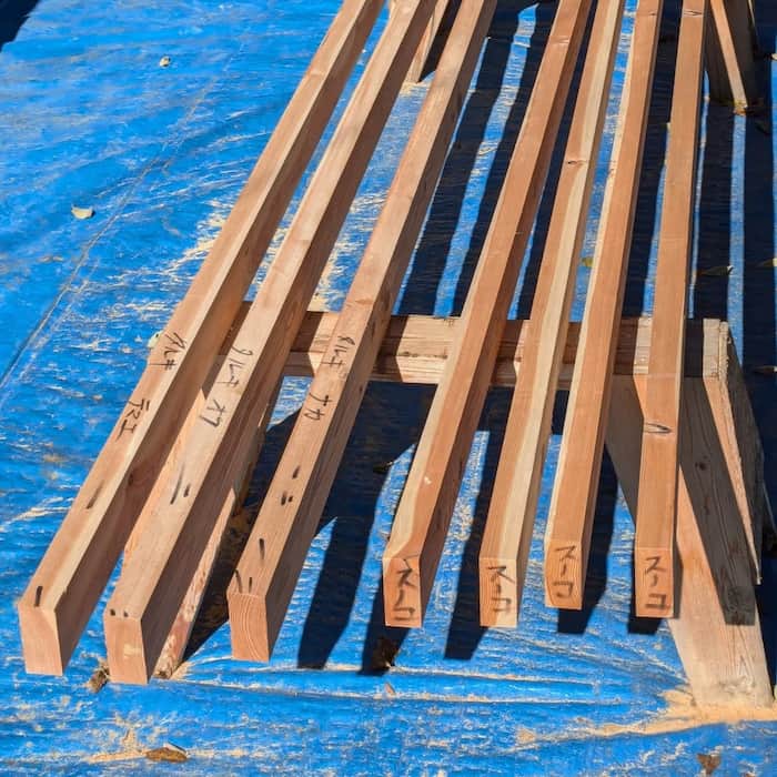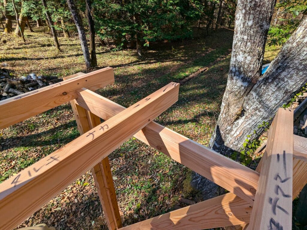 キットと価格 薪小屋キットの内容 マツカラの薪小屋キットには、薪小屋を作るために必要な材料が含まれています。組み立てやすいように一部木材を組み立てた状態でお届けします。 Included items 同梱品 木材一式屋根屋根専用のネジとキャップ木材固定用の釘束石(平板6cm厚) 組み立てイメージ ※上記は同梱の束石ではなく、基礎工事をしています Price キットの価格 松恋(まつこ) 不揃いな薪の積み重ね、樹種や乾燥時期に合わせた区分けに便利な中段ありタイプ。 149,900円 (税込み) 唐匠(からぞう) 空間を余すことなく、最大限に活用できる中段なしタイプ。 129,900円 (税込み) 【組み立てに必要な道具】インパクトドライバー、巻き尺、脚立、水平器、スコップ【あると便利な道具】下げ振り、墨ツボ、サシガネ * 運搬費、基礎工事、カスタマイズは別途見積もりとなります。* 運搬費は下諏訪からの発送で300円/kmとなります。* 簡易的な組み立て説明書がつきます。お渡し時に口頭で補足させていただきます。 Construction 組み立て 組み立てをご希望の場合は、熟練した大工によるサポート(道具一式含む)または、完全お任せプランをお選びいただけます。 組み立てにかかる時間は大人1人で2日、大人2人で1日が目安となります。 組み立てサポート 熟練した大工が組み立てを1日サポートします(工具一式を含む)。工具や木材などの重量物を扱える大人の方1名以上にご参加いただく必要があります。 松恋(中段あり):45,000円 (税込み) 唐匠(中段なし):38,000円 (税込み) 完全お任せプラン 熟練した大工が1つ1つ丁寧に組み上げます。作業は1~2日が目安となります。 松恋(中段あり):59,900円 (税込み) 唐匠(中段なし):54,000円 (税込み) ※地面が水平で十分に固い場所での設置費用となります。傾斜地や水平がとれない場所、地面が緩い場所などでの施工は基礎工事が必要となります。基礎工事の必要性や価格は現場を確認した上でご相談させていただきます。 > 基礎工事について > 保障について カスタマイズ 素材や構造などの機能はそのままに様々なカスタマイズも可能です。床板や背板、ドアを取り付けて小屋にする。片側は薪小屋、片側は小屋にする。スペースや薪の使用量に合わせ横幅や奥行を大きく/小さくする。など カスタマイズは別途見積りとなります。 ご注文はこちらから →