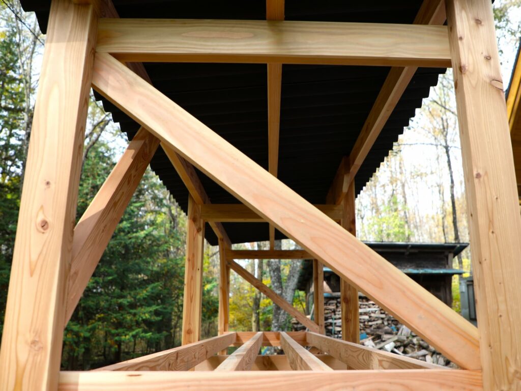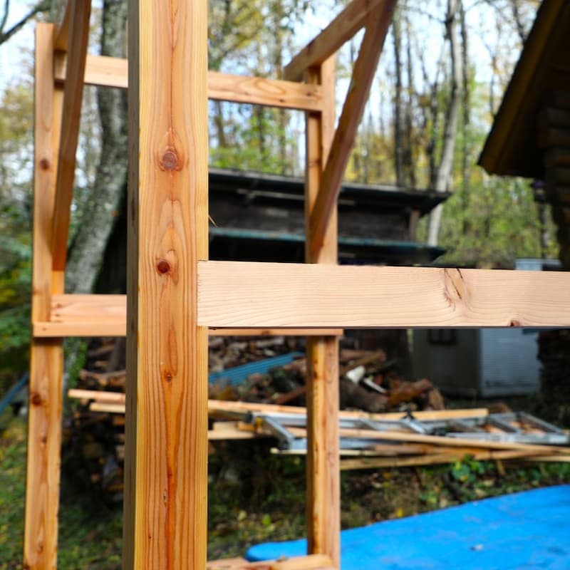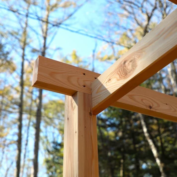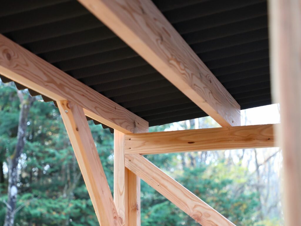 薪小屋の構造 巾 和史 Haba Kazushi 大工として20年以上一棟一棟に心を込めて向き合い、技術を磨いてきました。日本の伝統的な木造建築の技法を大切にしながら、国産の木材や自然素材を用いることで、住む人にも地球にも心地よい家づくりを目指しています。 長く使うものだからこそ、安全と自然の調和を 薪ストーブを使う家にとって薪は欠かすことができません。薪は想像以上に重く、薪小屋に積み上げた薪の重量が1トンを超えることも珍しくありません。また、家と同様に何十年と長く使うことが一般的です。時間が経っても傾きや壊れることがなく、長期的に安全に薪を保管・乾燥させる。自然と調和した形で敷地の景観を守りながら自然に優しい薪小屋を提供する。材料から細部まで一つ一つにこだわりをもった。それがマツカラの薪小屋です。 強度と使いやすさの両立 重量の重い薪をしっかりと支えるために専用のほぞを切り、木材同士を結合する設計にしています。薪小屋の変形や倒壊を防ぐため、筋交い(建物の柱と柱の間に斜めに入れる補強材)を入れることで強度を補完しています。できる限り薪を積むスペースを確保できるよう、筋交いは必要最小限のサイズにしています。 薪の乾燥 薪の乾燥は薪が持つ本来の力を引き出すための、大切な過程です。 マツカラの薪小屋は薪を乾燥させるために通気性が高い構造になっています。 木は伐採された直後、およそ50%もの水分を含んでいます。水分が抜けていない生木を燃やすと、煙が多く出て、火がつきにくく、燃焼効率も下がってしまいます。 しっかり乾燥した薪は、美しい炎を上げます。煙も少なく、ストーブや煙突を汚すタールの発生も抑えることができます。 → 素材の特徴を見る ご注文はこちらから →
